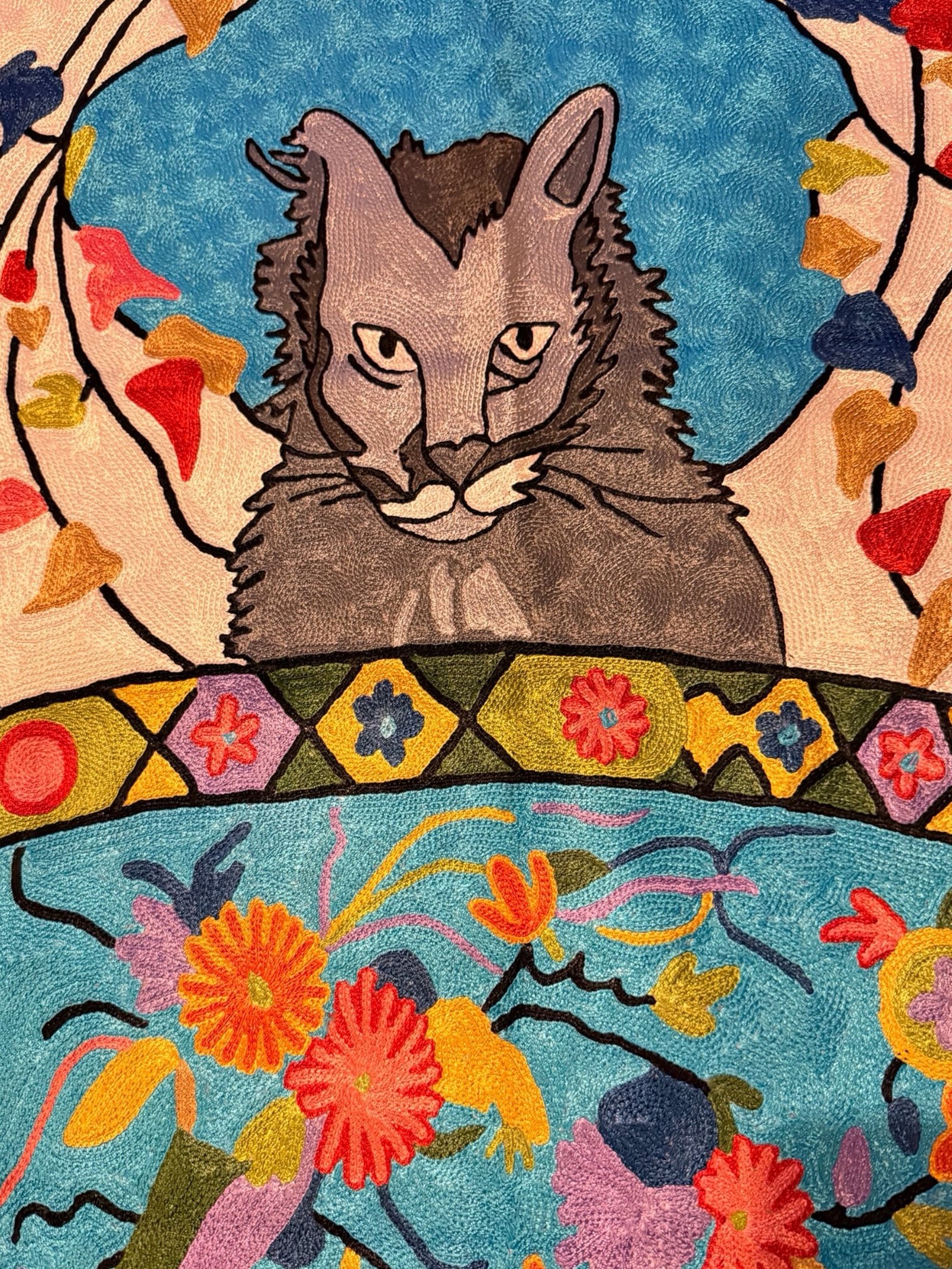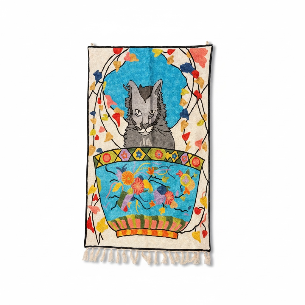Regal Cat in Bloom – Folk‑Art Inspired Handmade Wall Hanging
